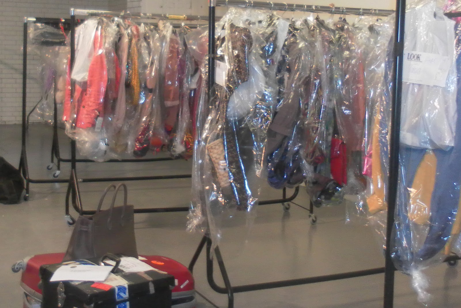 The Look show was amazing. We got there and all the clothes had to put on rails which were designated to two models. I was dressing Paul Wellers daughter, Leah Weller. She was quite a small model and was really very shy. I asked her if she had done many cat walks before and she replied she had not, because of her size. I think she said she was 5″6. She was very nice and surprisingly quite. She said how she was nervous because the people were so close to the runway that she would be able to see them and her Mum was front row, so she was trying not to look at anyone. She only went on once, opening for French Connection.