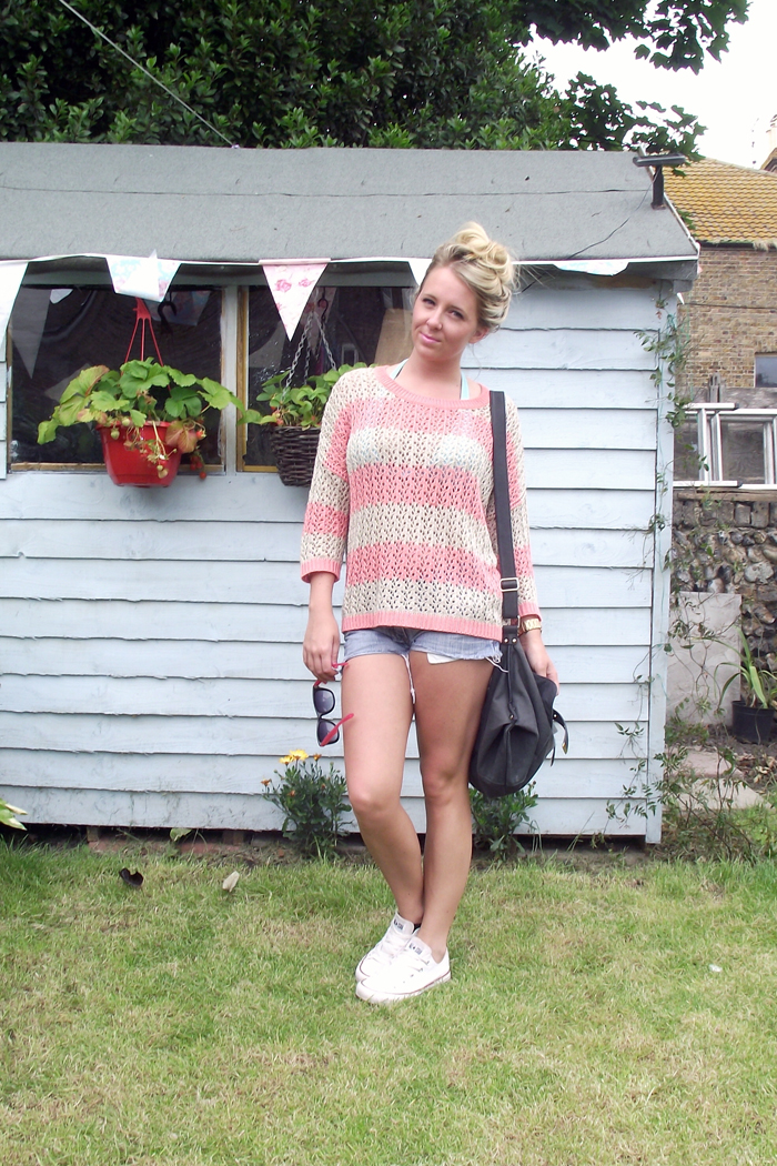 Jumper Warehouse / Shorts River Island / Bag Warehouse / Shoes Converse / Sunglasses Betsey Johnson / Watch MKors