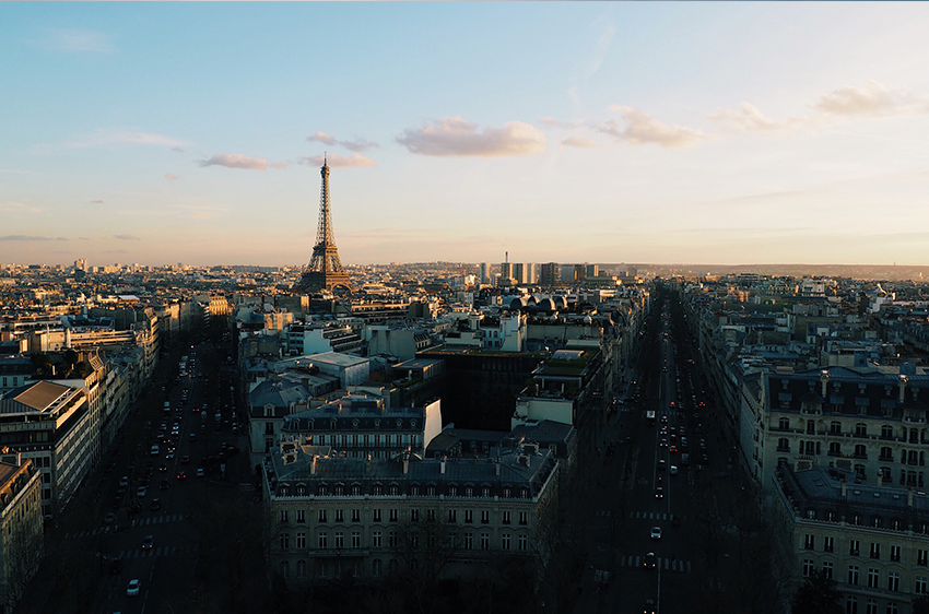 The other side, leaves bright blue with a few floating clouds around the Eiffel.