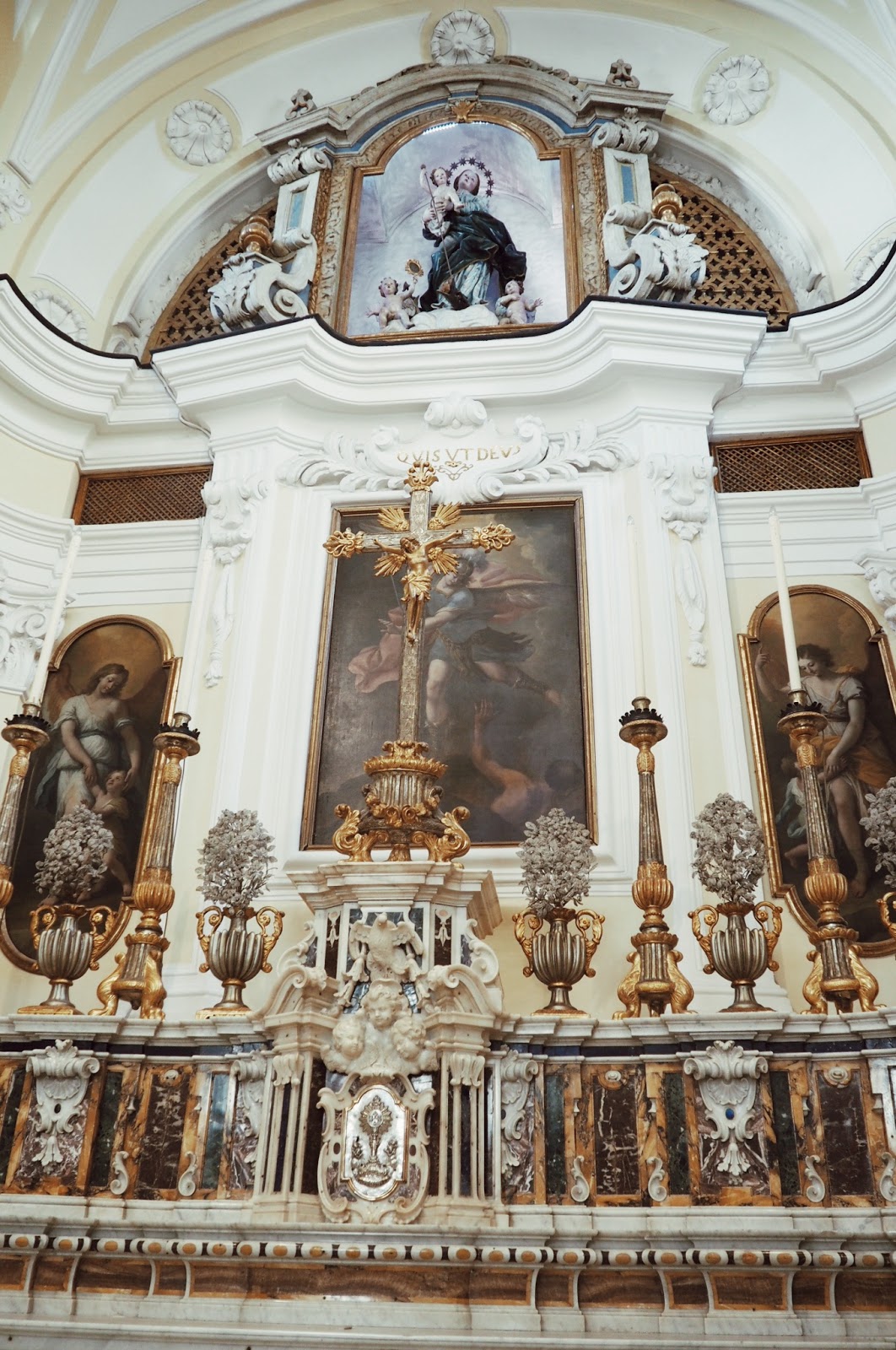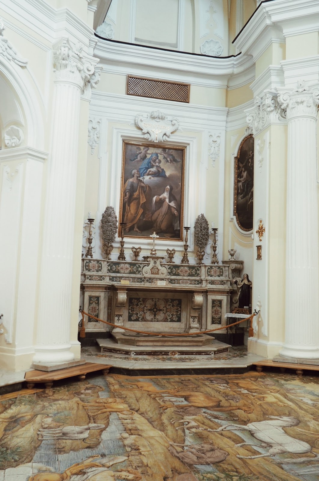 It is an 18th century Italian style church, famous for its majolica floor decoration depicting the explosion of Adam and Eve.