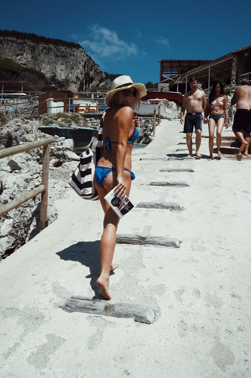 After a chilly but perfect cool down swim in the sea, we headed up for a bite of lunch at a nearby cafe. Hat on head and book in hand